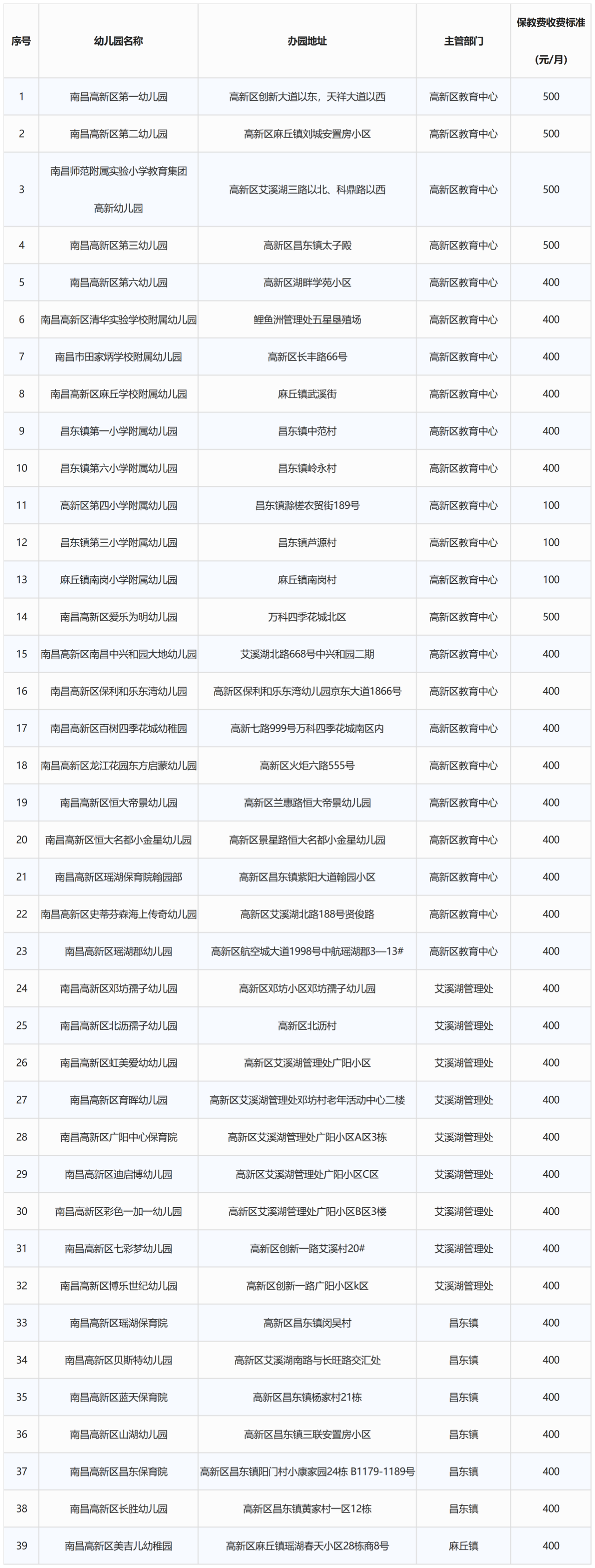 ➤2022年秋季南昌高新区公办幼儿园名单: