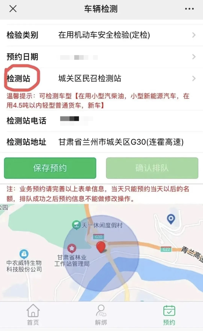通过“兰州车管所”的微信公众号,进入“预约业务”选择“机动车年检预约”,系统会自动根据你选择的位置,提供由近至远的检测站和联系方式,方便您根据自己的需求进行预约和咨询。