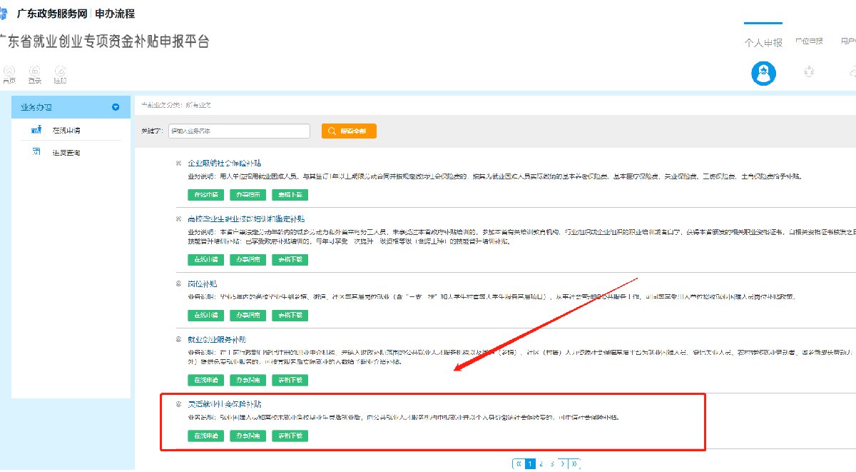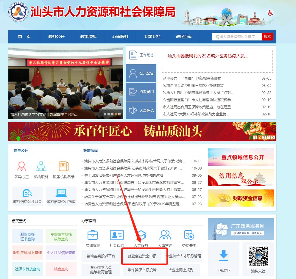 登陆“广东省就业创业专项资金补贴申报平台”(http://www.gdhrss.gov.cn),也可从汕头市人力资源和社会保障局官方网站(http://www.shantou.gov.cn/hrss)→办事指南→就业创业资金申报登陆。个人用户注册,注册后登录系统。