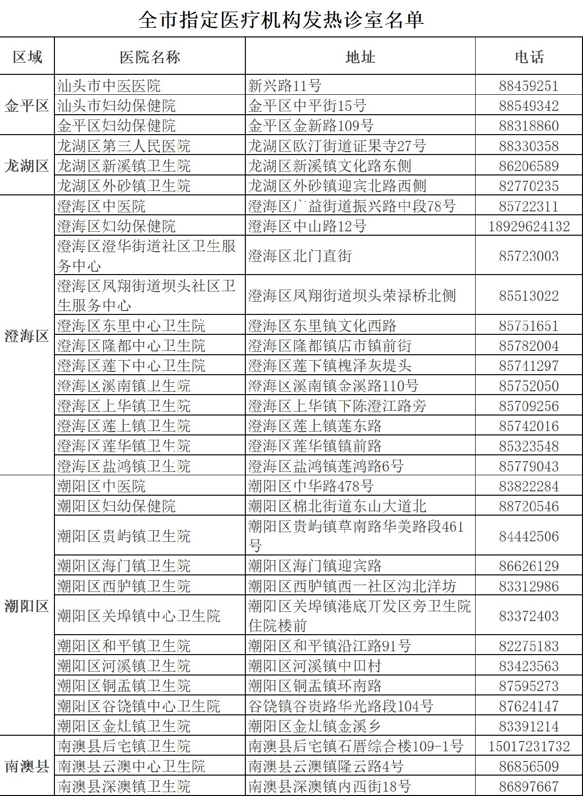 汕头市指定医疗机构发热诊室(汕头市发热门诊)