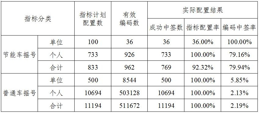 ③合计:成功中签数11194,指标配置率100.00%,编码中签率2.19%