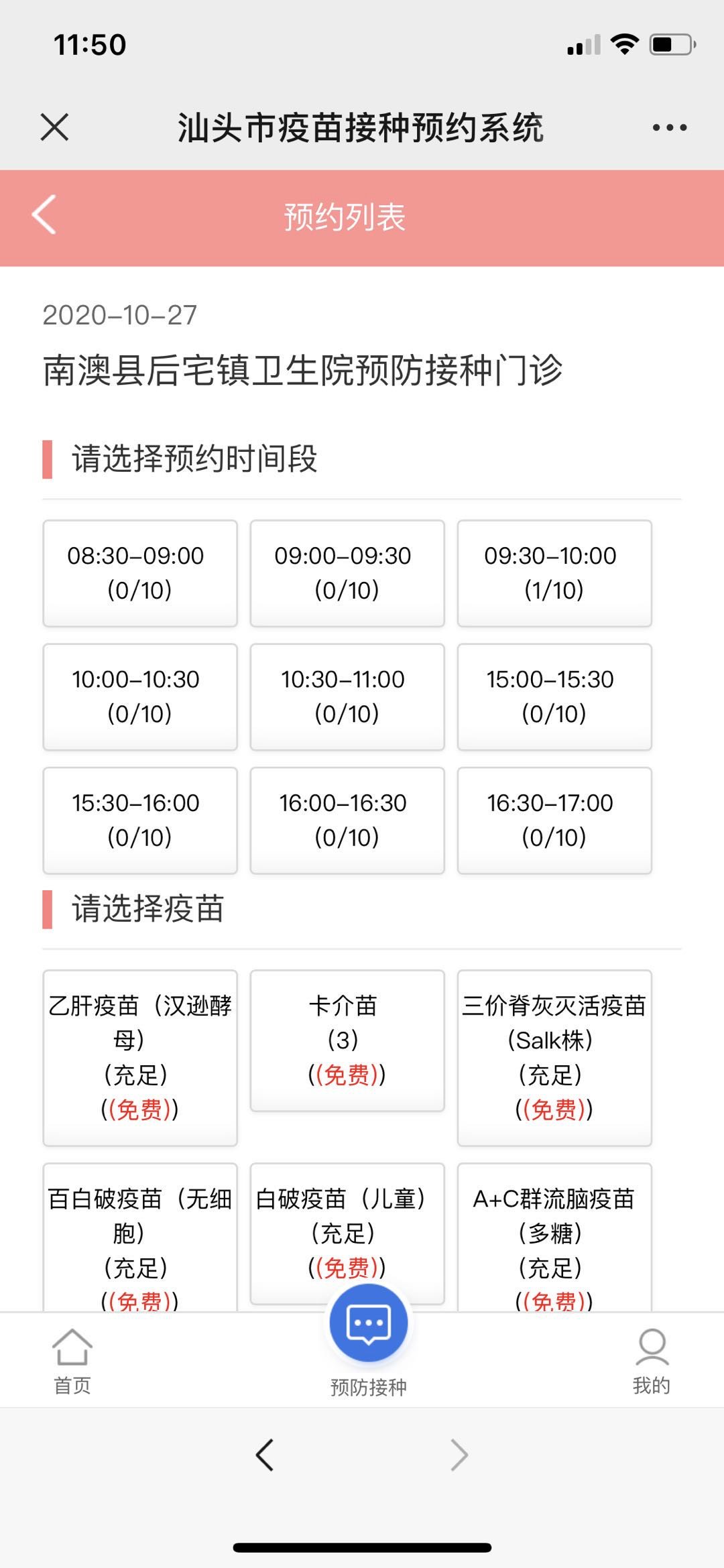 5.选择可预约的时间段之后下滑点击所需的疫苗,正确输入个人信息即可。