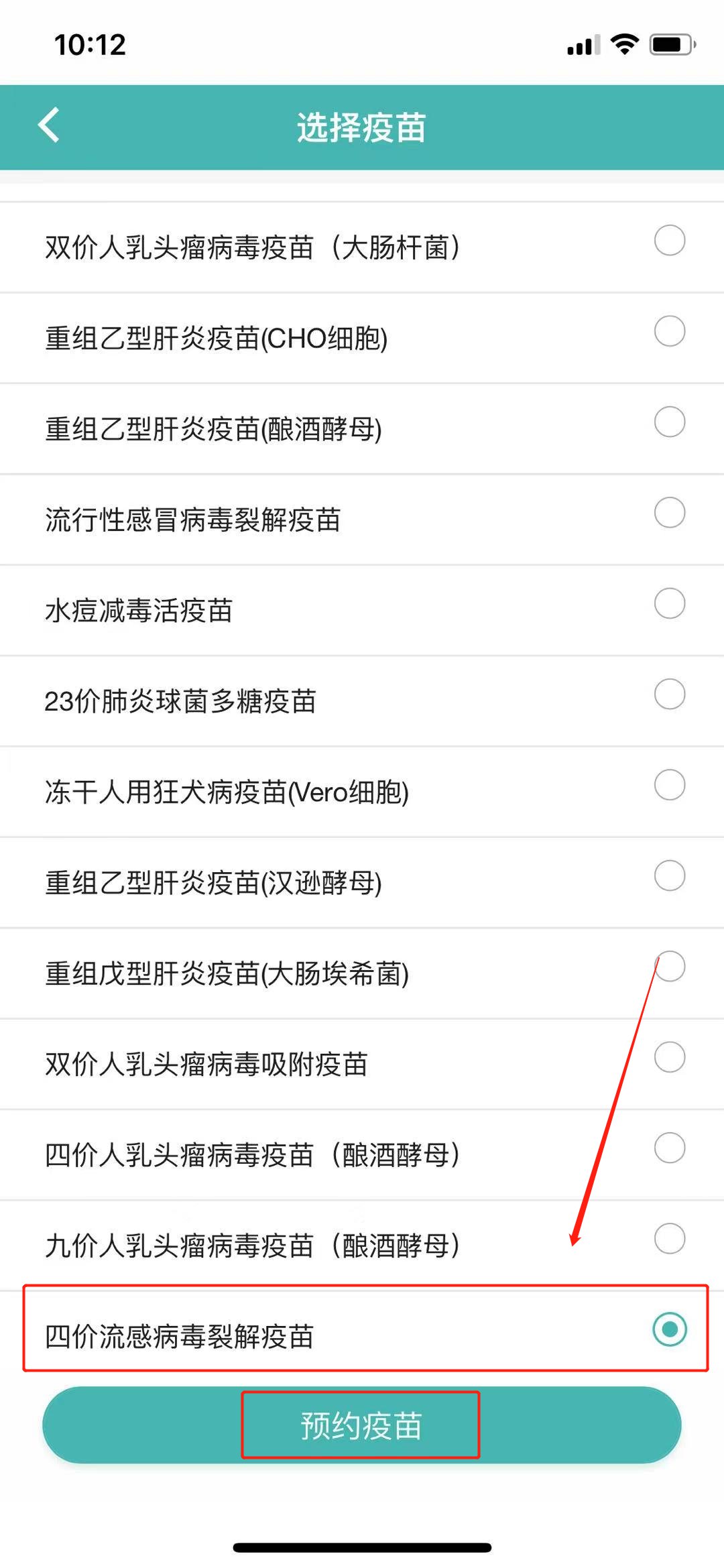第三步:点击【预约接种】,然后找到流感疫苗并选择。