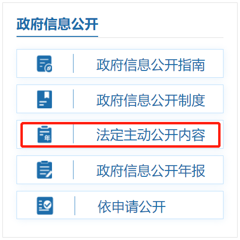 2、在网页中部靠右位置找到“法定主动公开内容”,点击并进入。