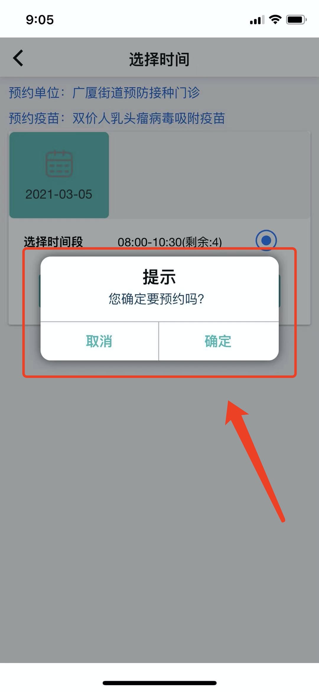 预约成功后按预约时间提前15分钟前来接种门诊,进入接种门前前配合工作人员进行体温检测,如实提供健康状况,方能凭“预约成功”界面现场取号(以现场取号为准),等待窗口叫好登记,接种。错过时间视为放弃,需要重新预约。(如无法前来取消后重新预约,一个月内取消预约不能超过两次,含两次)
