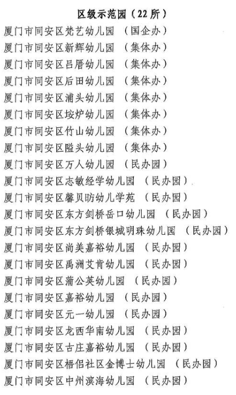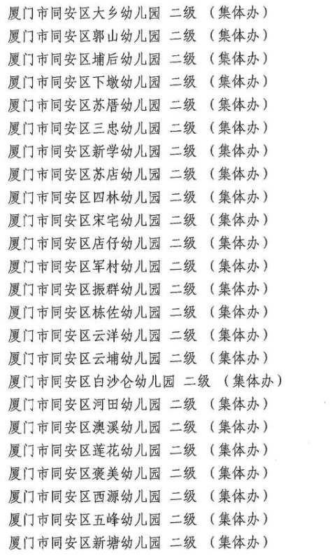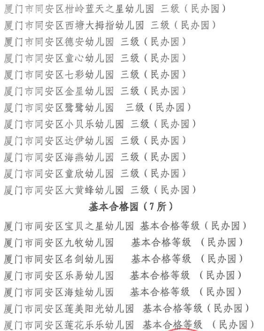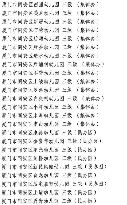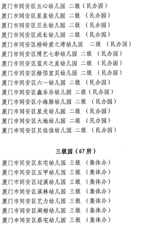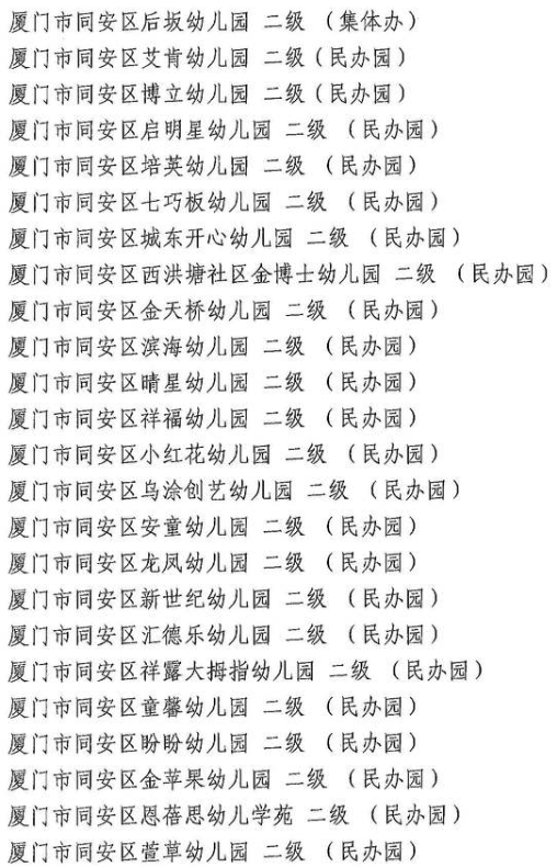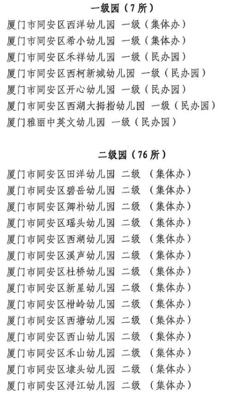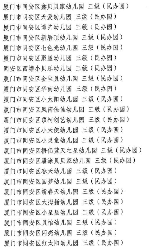 2022同安区幼儿园等级划分表 2022同安区幼儿园等级划分表最新