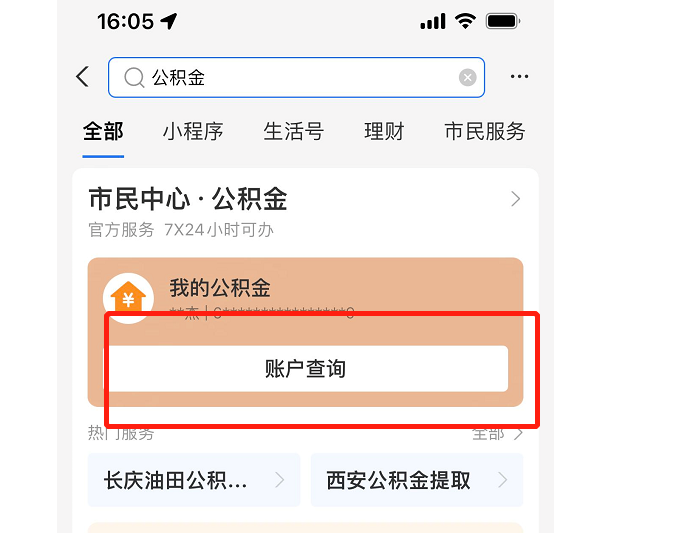 2、注册成功,完成个人登录后,在搜索框输入【公积金提取】,下滑到【政务服务】,可查看能线上提取的公积金种类。