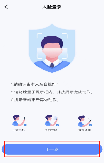 第六步:点击下一步进行人脸识别认证(需本人进行)。