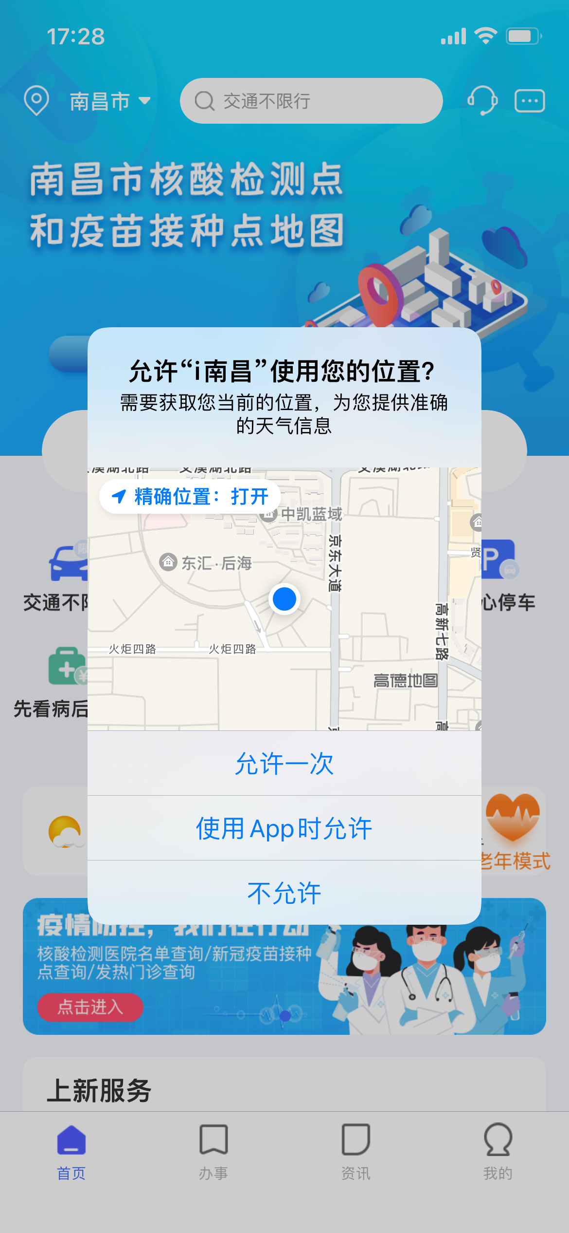 第二步:启用软件中获取设备的定位信息权限,选择使用APP时允许。