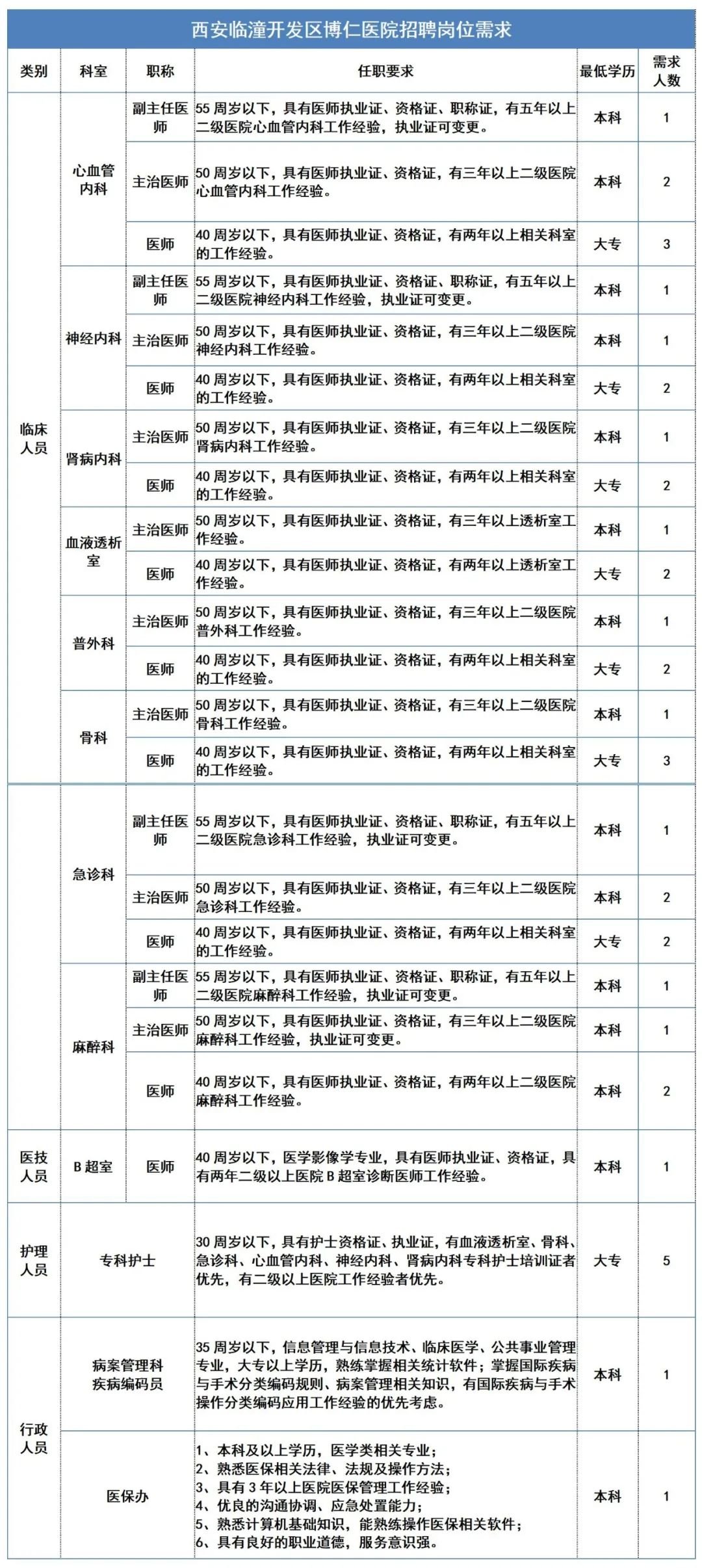 2022西安临潼开发区博仁医院招聘公告 临潼博仁医院咨询电话