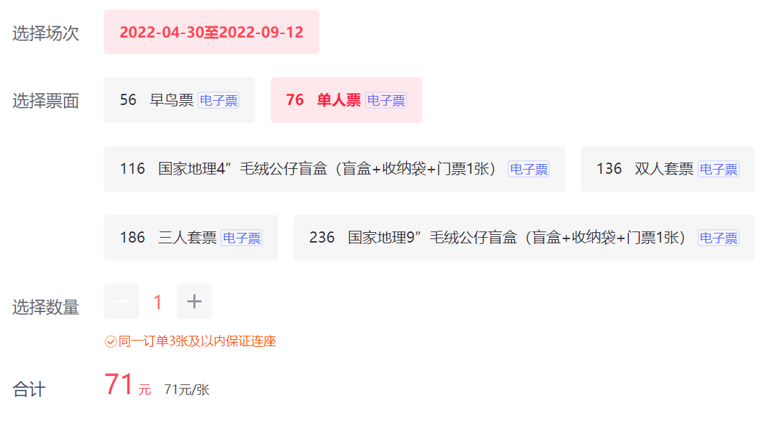 国家地理4”毛绒公仔盲盒:116元=国家地理4”毛绒公仔盲盒+国家地理收纳袋+门票1张