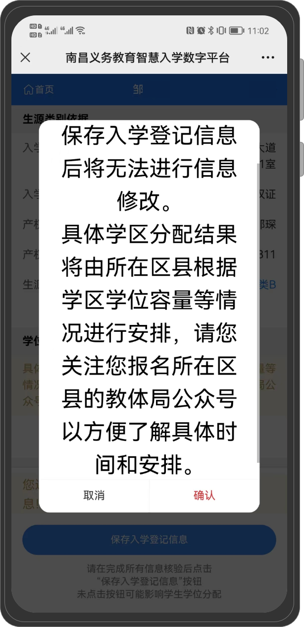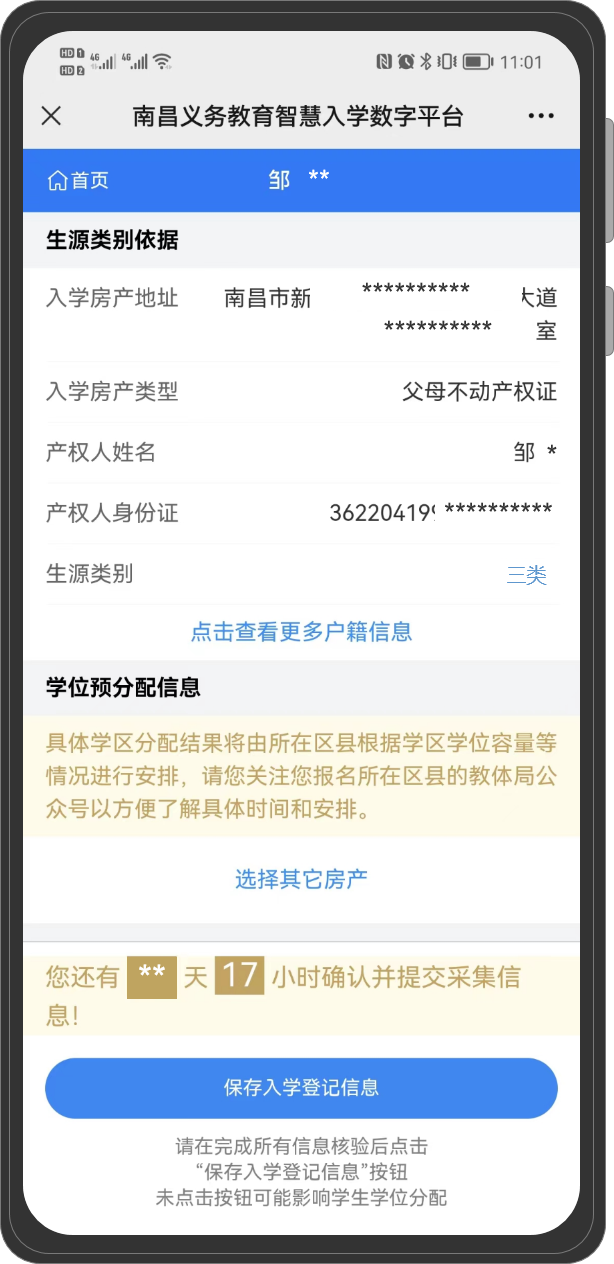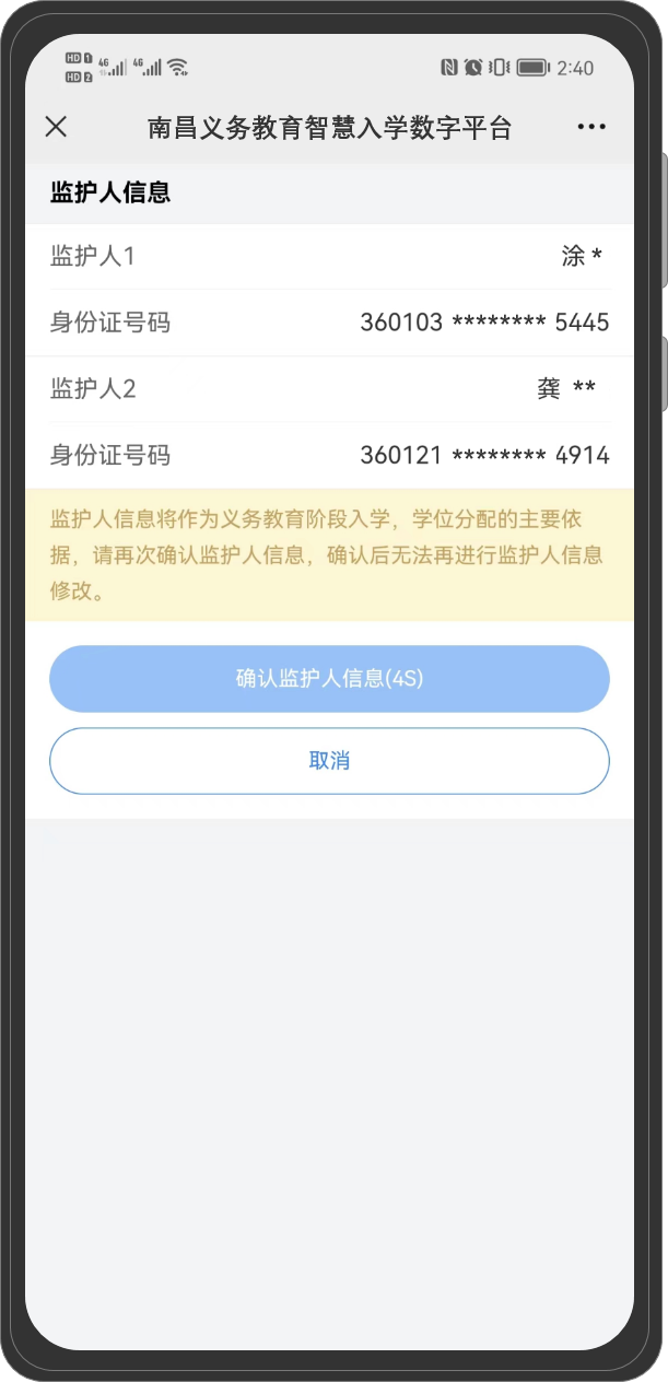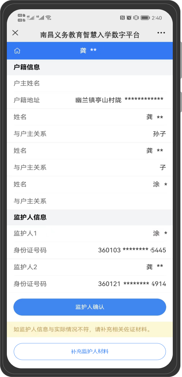 重点提醒:请仔细核对监护人信息,监护人的房产相关信息将作为学位分配的依据。