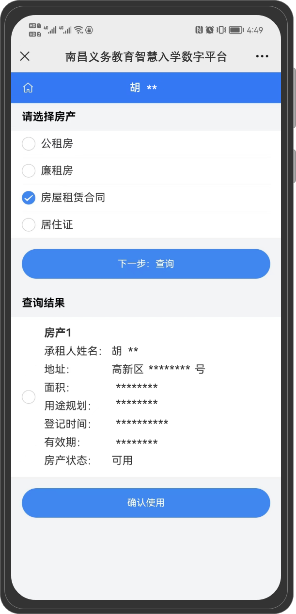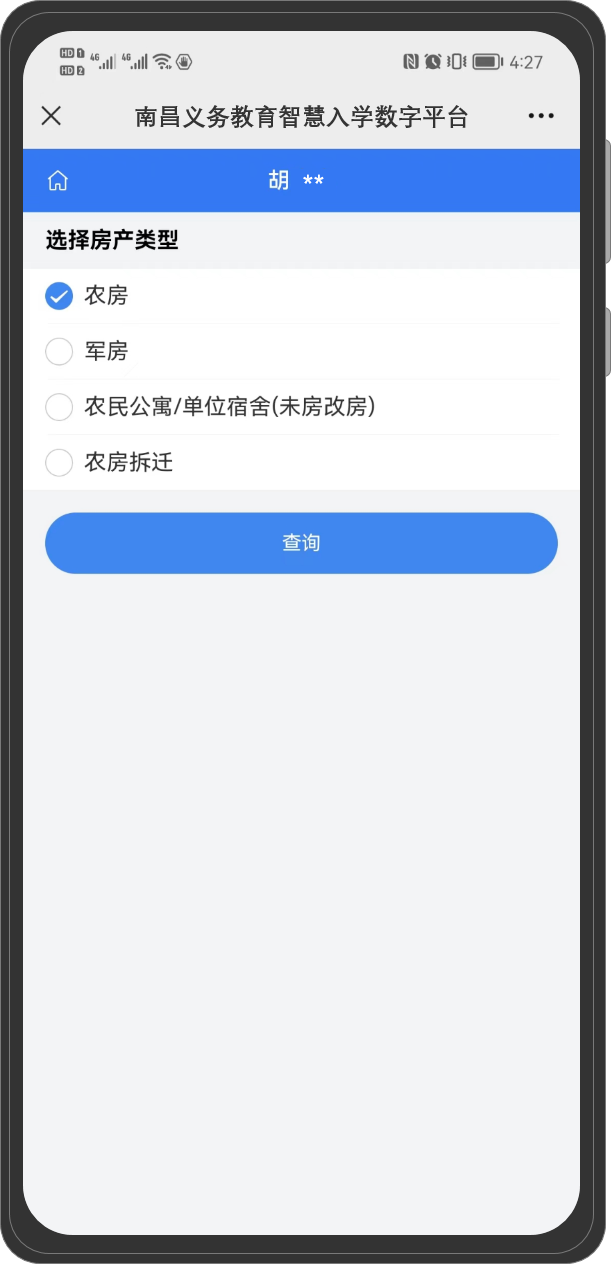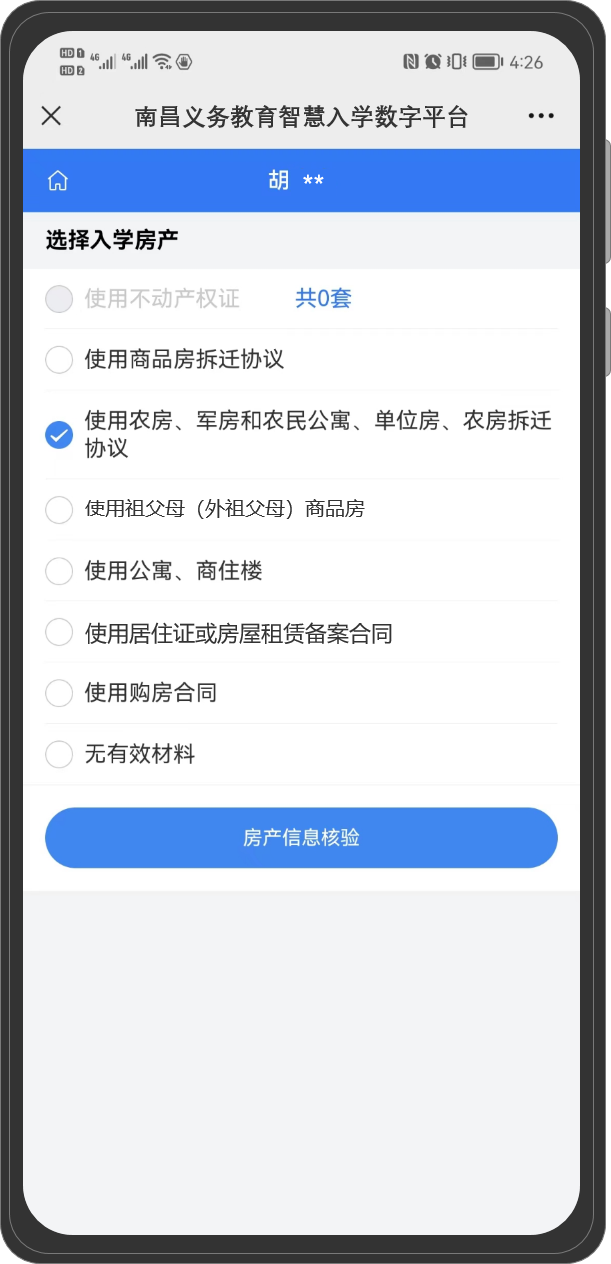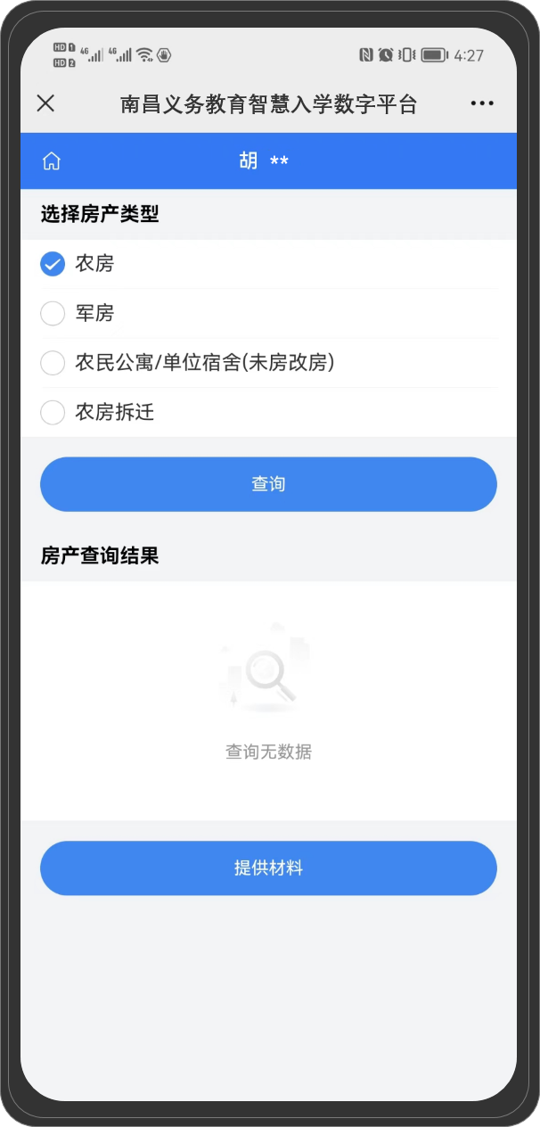 使用农房、农民公寓、军产房、单位房、农房拆迁协议入学,申请查询农房房产,如查询无结果,需提交相关证明材料。
