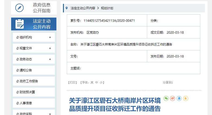 关于濠江区礐石大桥南岸片区环境品质提升项目征收拆迁工作的通告