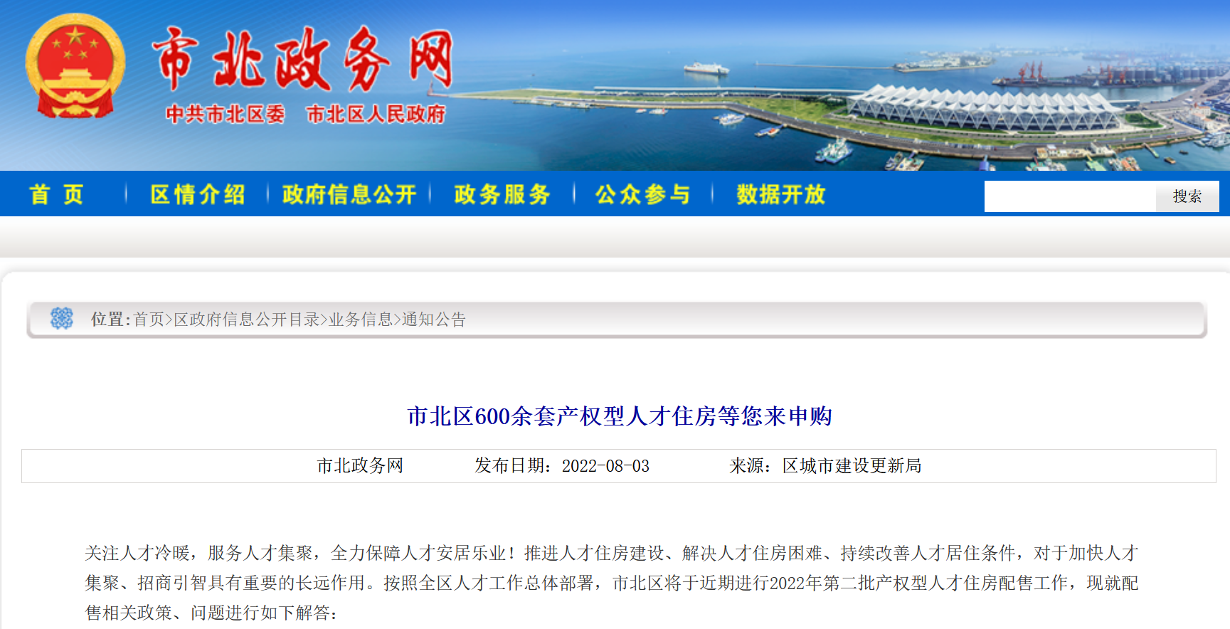 市北区将于近期进行2022年第二批产权型人才住房配售工作