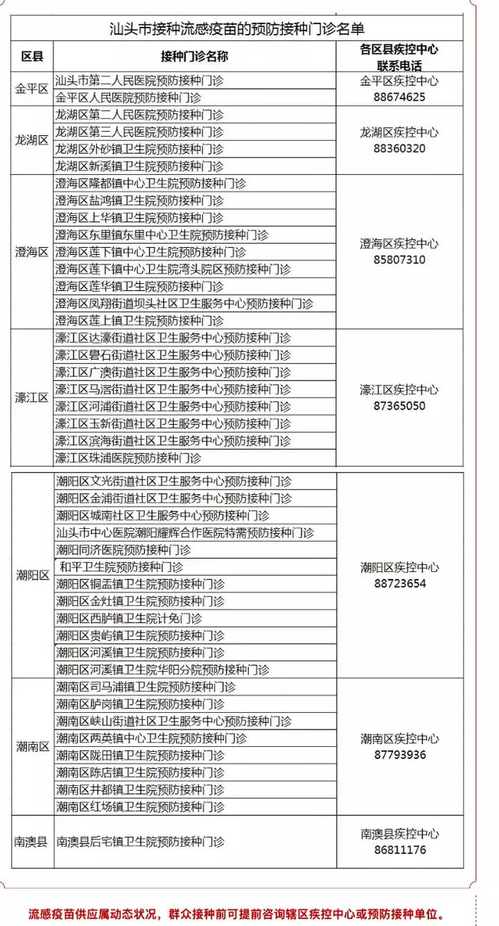 汕头流感疫苗预防接种门诊名单 汕头流感疫苗预防接种门诊名单查询