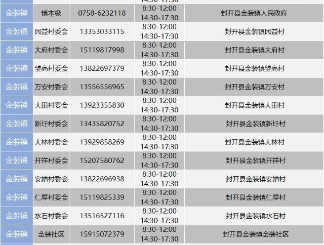 肇庆封开县金装镇防疫报备咨询电话汇总一览