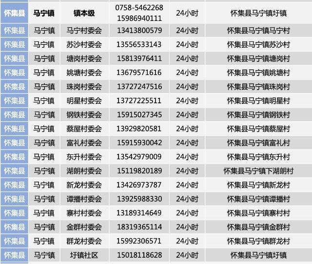 肇庆怀集县马宁镇防疫报备咨询电话汇总一览
