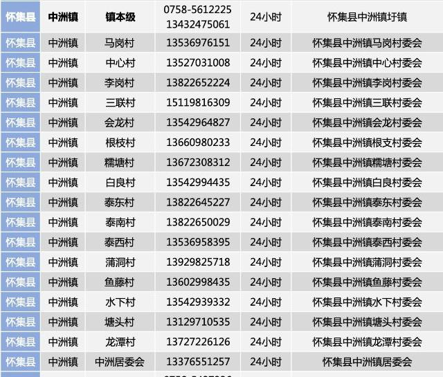 肇庆怀集县中洲镇防疫报备咨询电话汇总一览