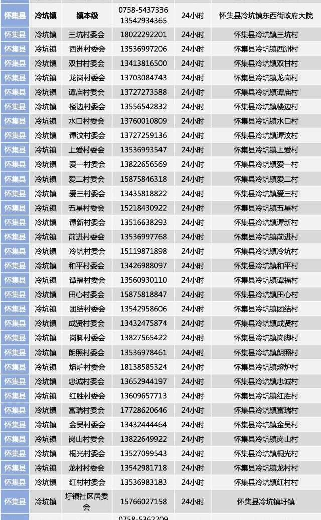 肇庆怀集县冷坑镇防疫报备咨询电话汇总一览