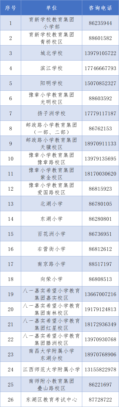 ➤2022年南昌东湖区幼升小网上报名填报咨询电话公布: