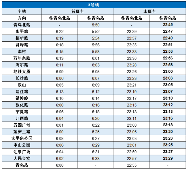 青岛地铁时间调整最新消息 青岛地铁时间调整最新消息表