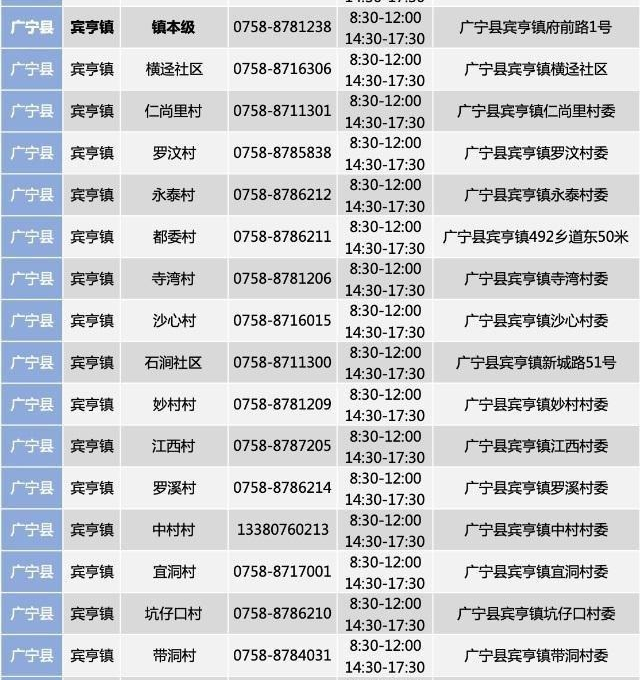 肇庆广宁县宾亨镇各村社区防疫报备电话公布
