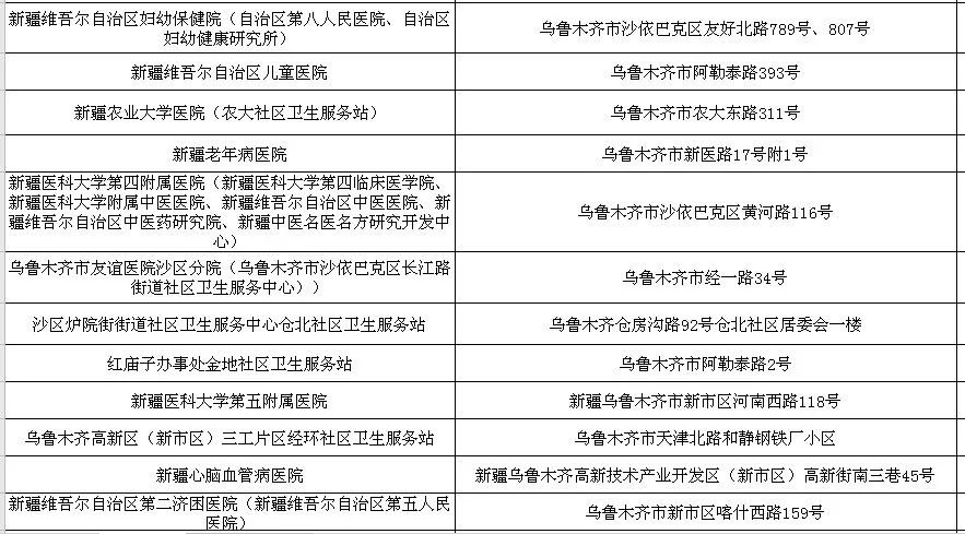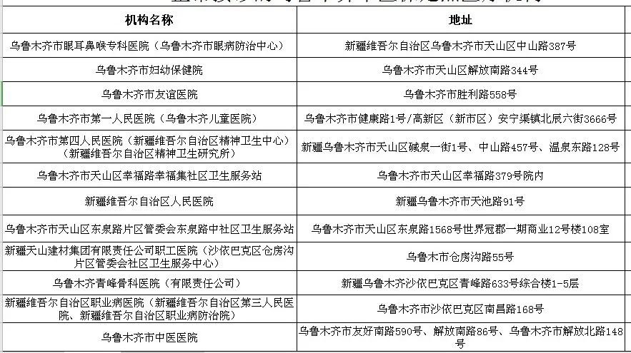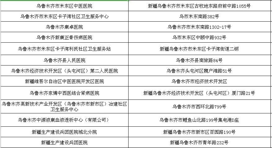 乌鲁木齐临时静态管理期间正常接诊医院名单