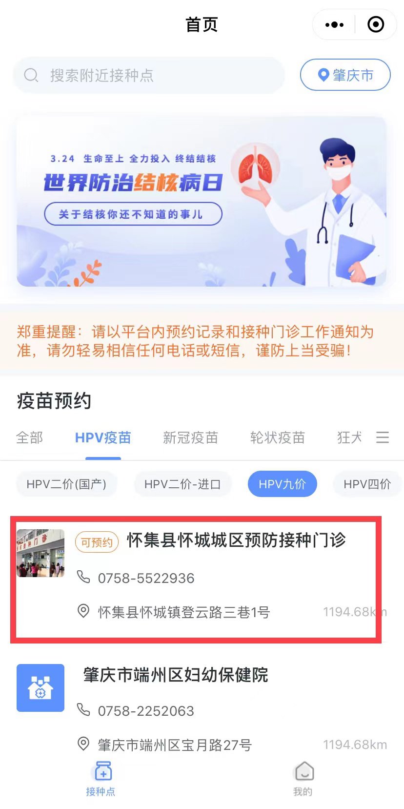 肇庆怀集县怀城城区预防接种门诊九价HPV预约(5月18日至5月25日)