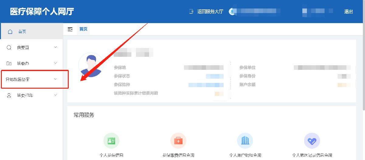 第三步,确认后,在左侧就能看到【异地就医备案】入口啦,点击后可以进行“异地就医备案”和“异地就医备案查询”两种功能。
