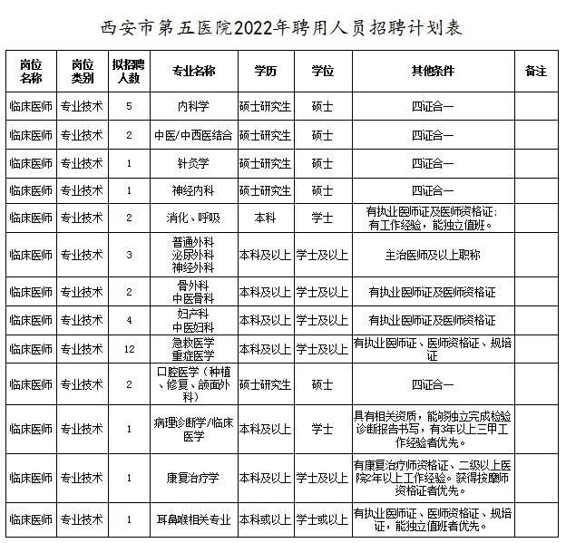 2022西安第五医院聘用人员公告(2022西安第五医院聘用人员公告及职务)