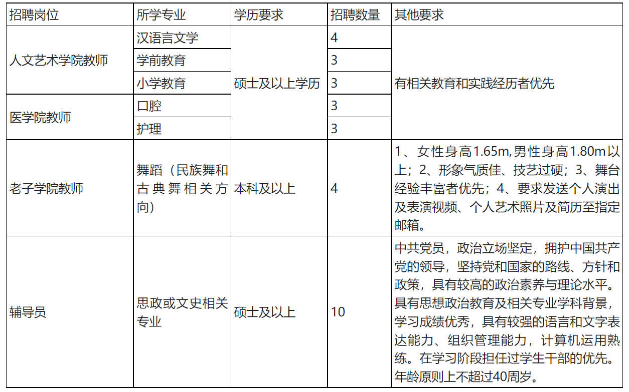 因学校事业发展需要,现面向社会公开招聘部分教师和辅导员岗位工作人员。