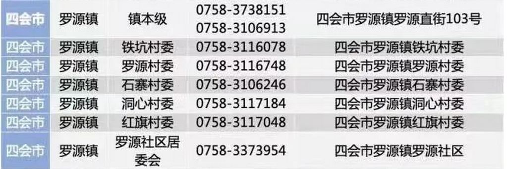 肇庆市四会市罗源镇村委会防疫咨询报备电话(点击图片可查看大图)