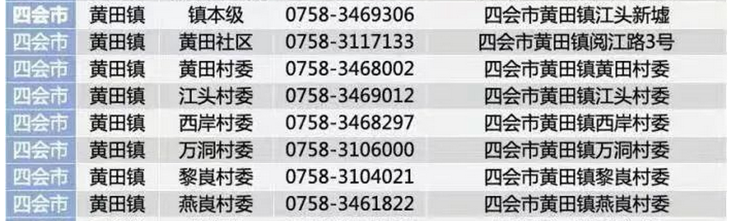 肇庆市四会市黄田镇村委会防疫咨询电话一览