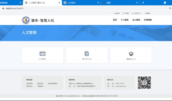 第一步:申请人访问肇庆市人才服务系统平台。访问地址:www.zqzhrs.cn点击“人才服务”,进入“人才管理”首页,新用户首先要进行注册,点击“登录/注册”。