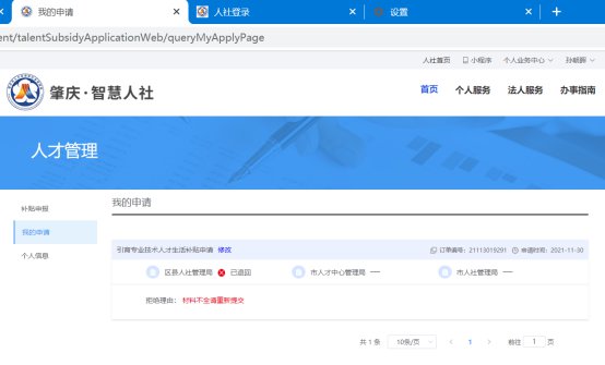 申请进度查询,根据审核结果完善信息或补充材料后,重新提交。