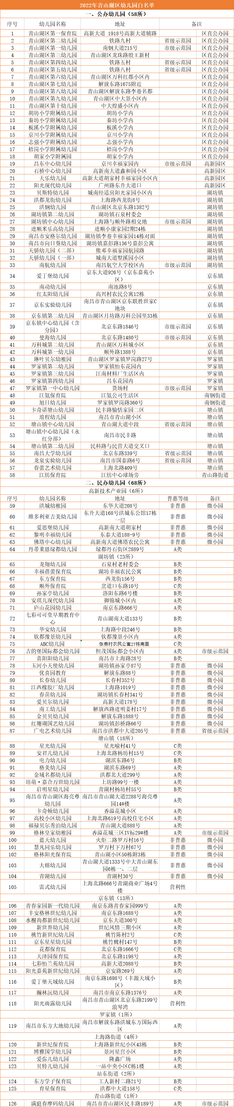 2022南昌青山湖区幼儿园白名单 南昌市青山湖幼儿园
