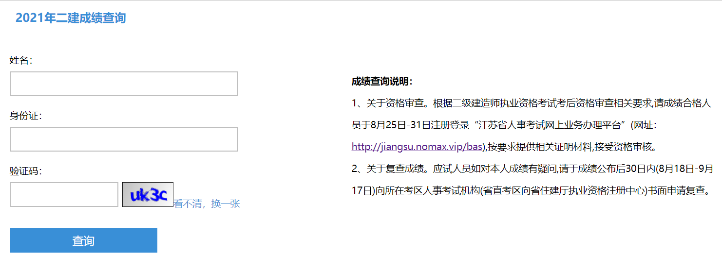 江苏二建成绩查询入口:https://rs.jshrss.jiangsu.gov.cn/hot/second-constr-cjcx/index.html