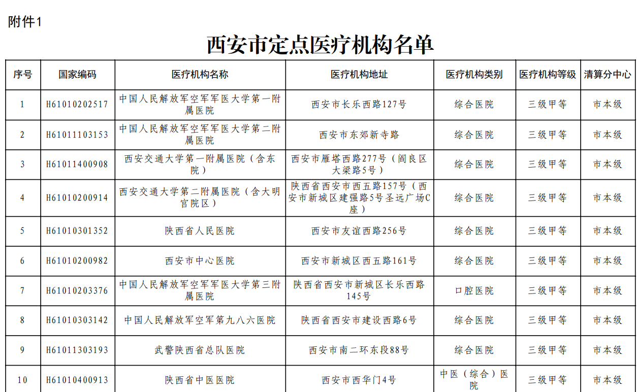 更多内容:西安定点医疗机构名单