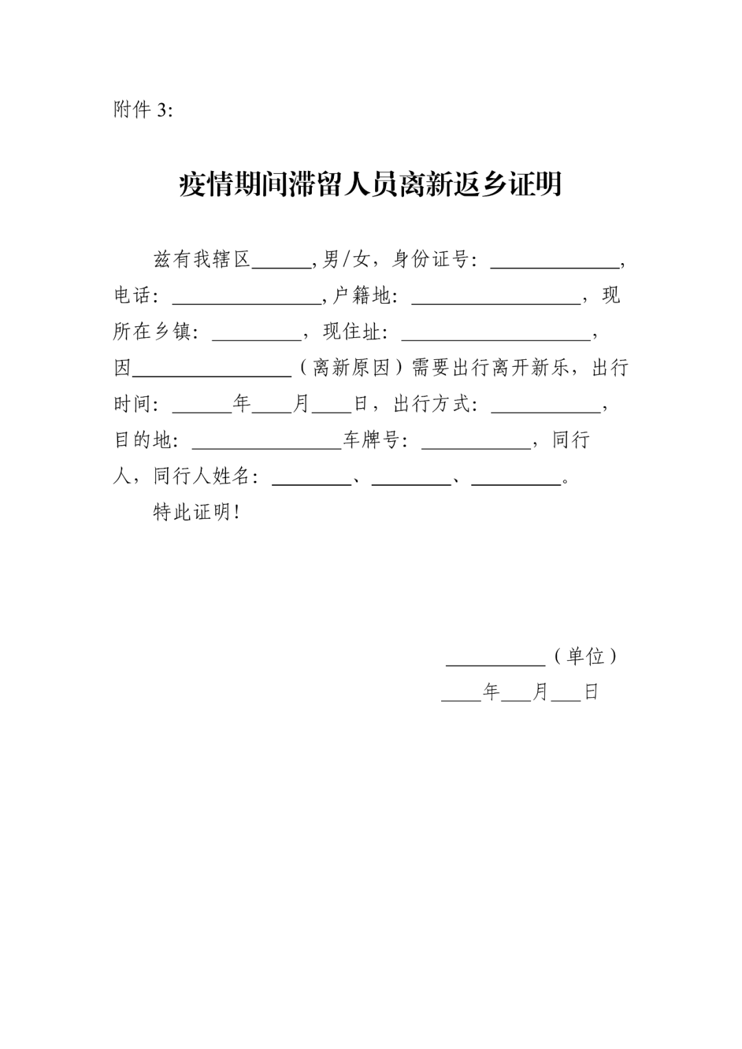 新乐市疫情期间滞留人员返乡证明 疫情返乡人员登记通知