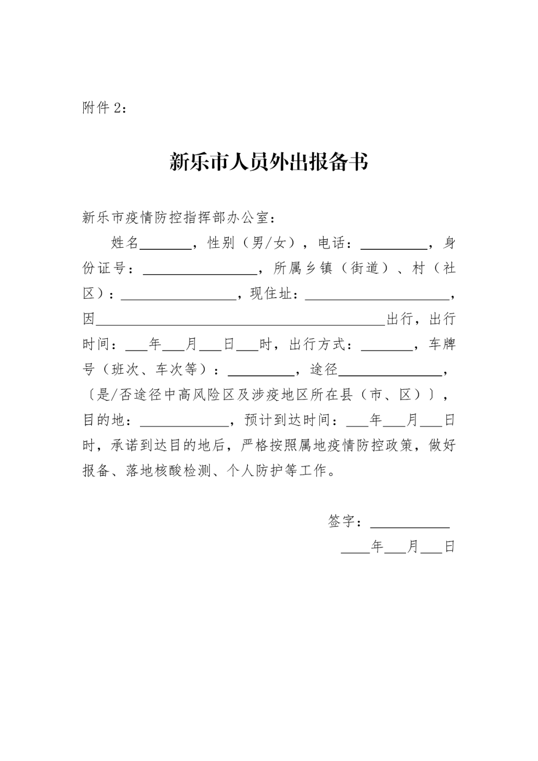 新乐市人员外出报备书 新乐市人员外出报备书模板