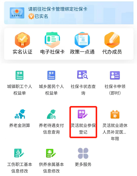 2、登录后,在页面中部靠下位置找到“灵活就业参保登记”,点击并进入。