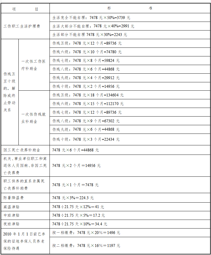 2022年度工伤保险和防暑降温费、高温津贴、中班津贴、夜班津贴等福利待遇标准,按本市职工月平均工资7478元计算,自2022年1月1日起执行。具体标准见《2022年度相关待遇简表》。