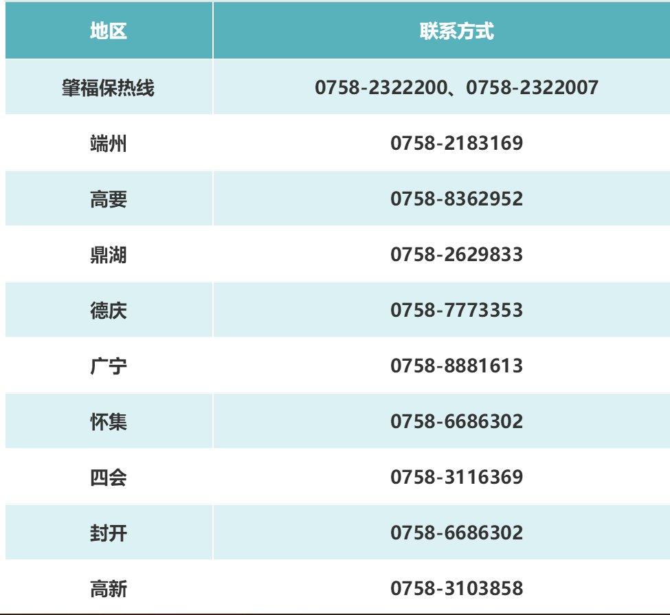 一、致电肇福保热线或各县市区驻点人员进行信息登记(电话信息详见下方表格)