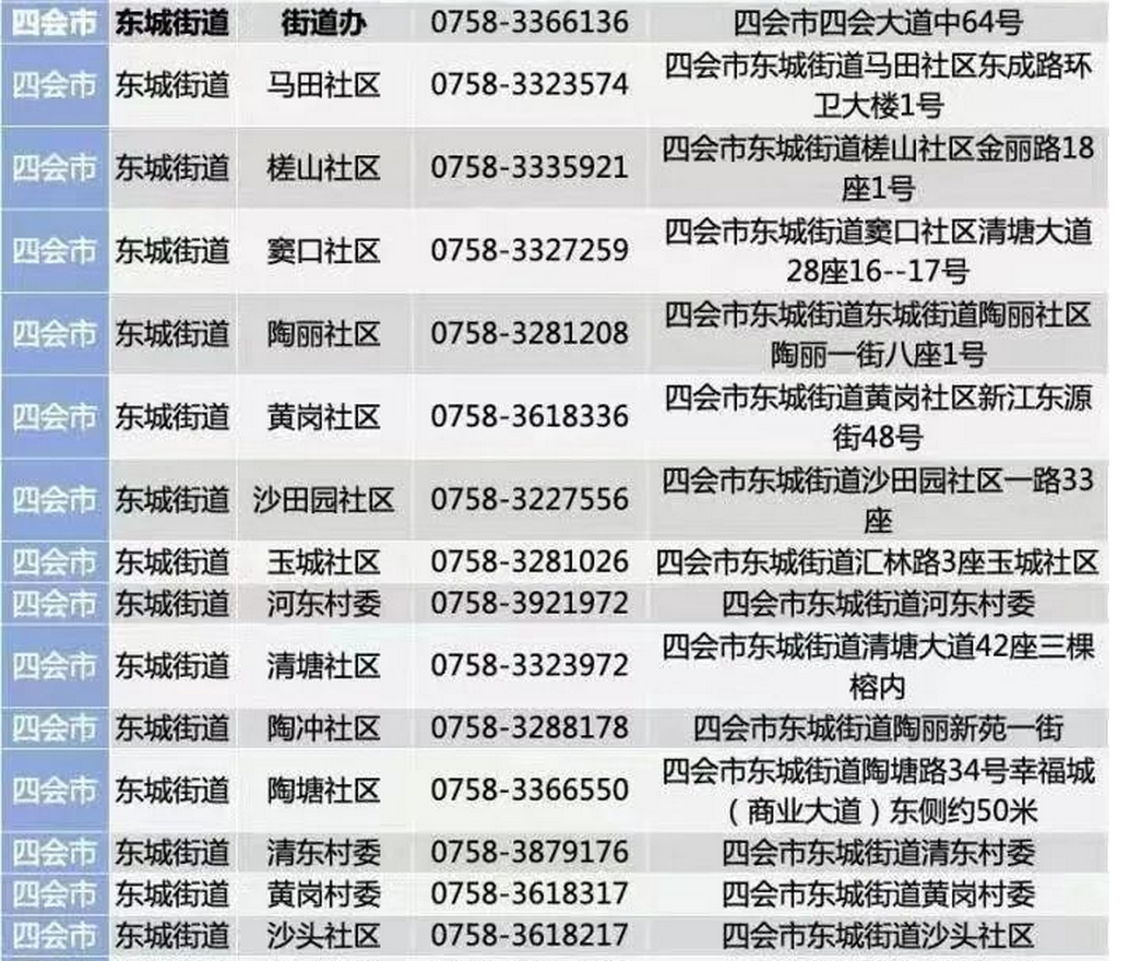 肇庆四会市东城街道社区防疫咨询报备电话一览
