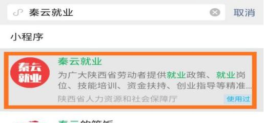 第1步:微信搜索“秦云就业”小程序或者扫描二维码。