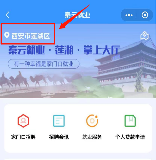 第2步:启动小程序,点击左上方的区域,选择“西安市莲湖区”分站。