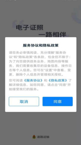 初次进入APP会弹出对应服务协议和隐私政策,选择【同意】后进入APP。