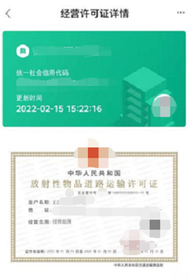 点击我的经营许可证对应的证照,查看证照详情;