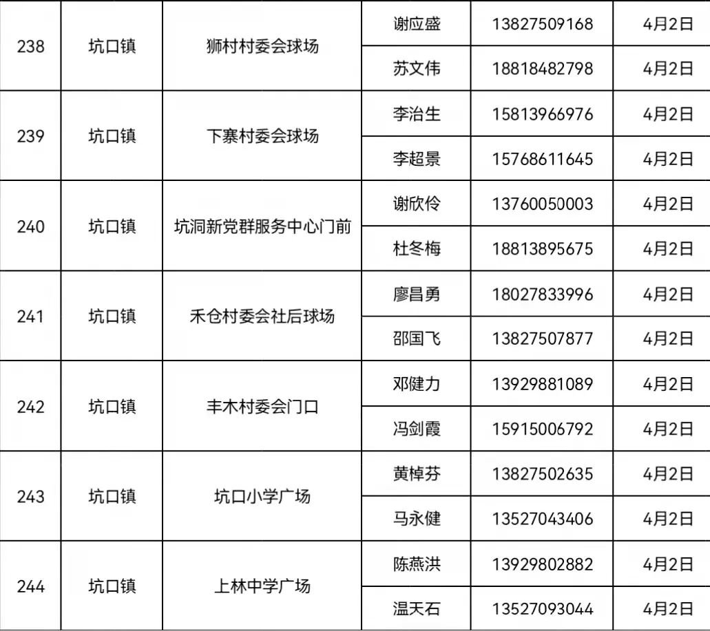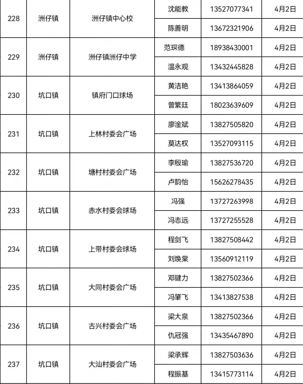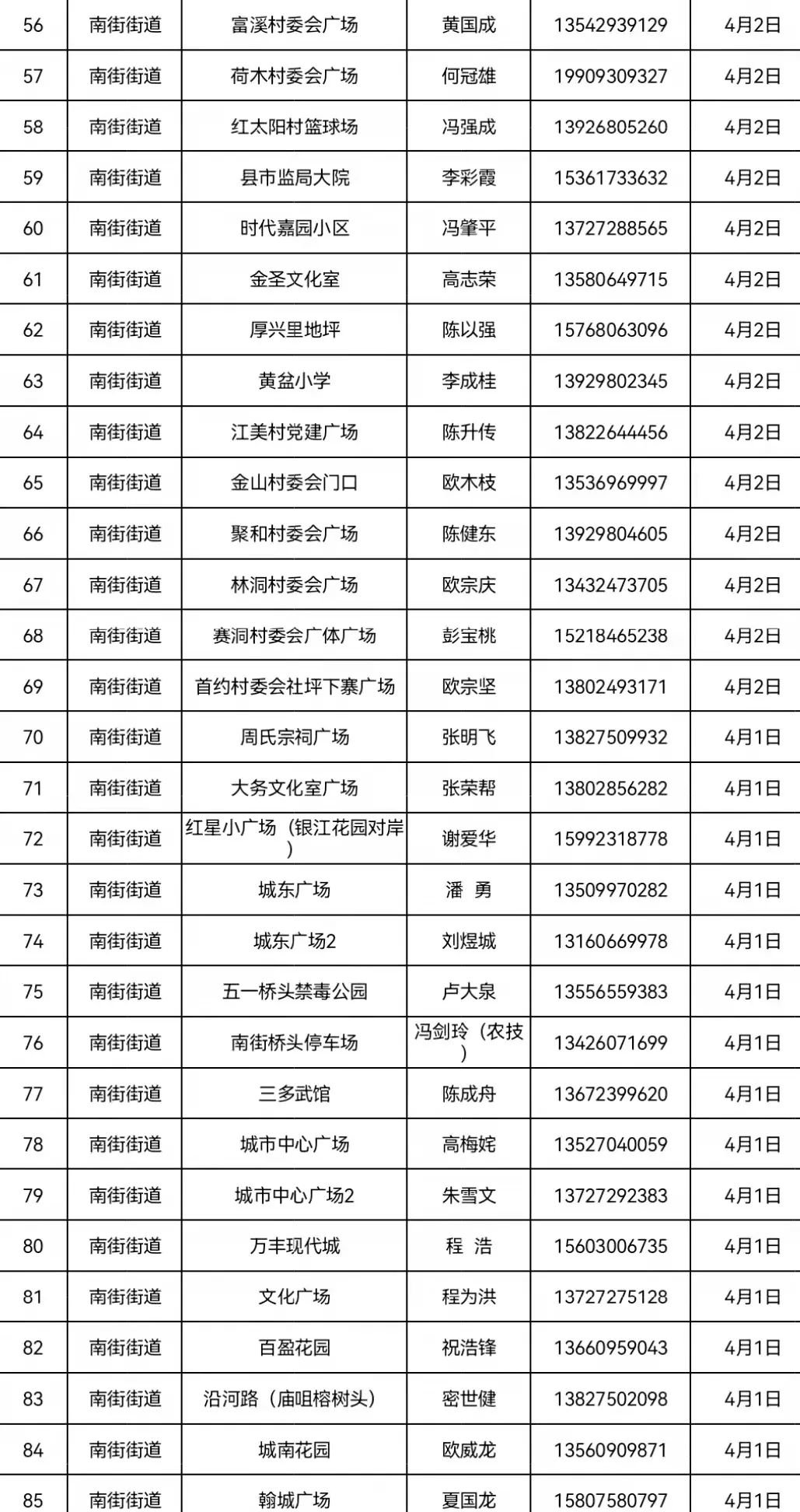 4月2日 南街街道各村委居民、洲仔镇、木格镇、石咀镇、北市镇、赤坑镇、坑口镇辖区内居民。